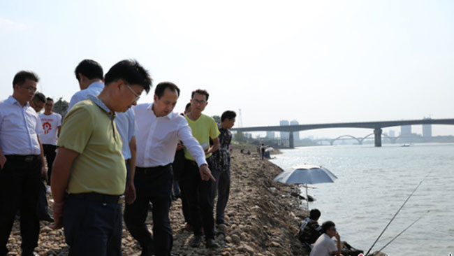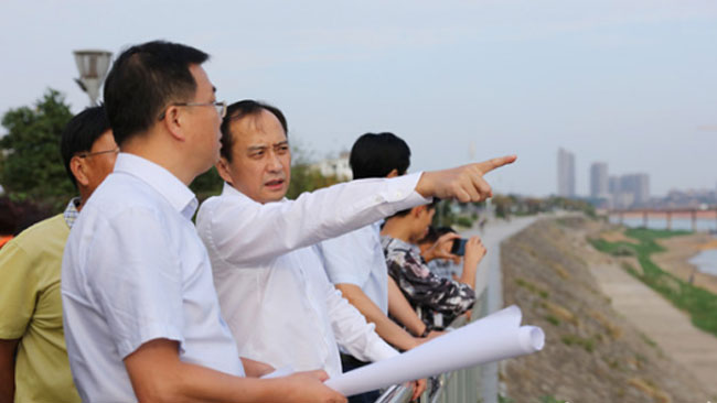 作为资江风貌带“十园十景”之一的十洲公园已初现雏形,线条优美的石板路与绿意葱茏的花草树木相互映衬,形成独具韵味的资江美景。许显辉对十洲公园的建设情况给予充分肯定,他详细询问施工进展中遇到的困难,要求施工方注重细节和品味,将规划设计方案落实到位。在三台塔防洪大堤上,许显辉认真了解了文物保护、工程进度等问题,督促施工人员要抓紧建设进度,切勿拖延。