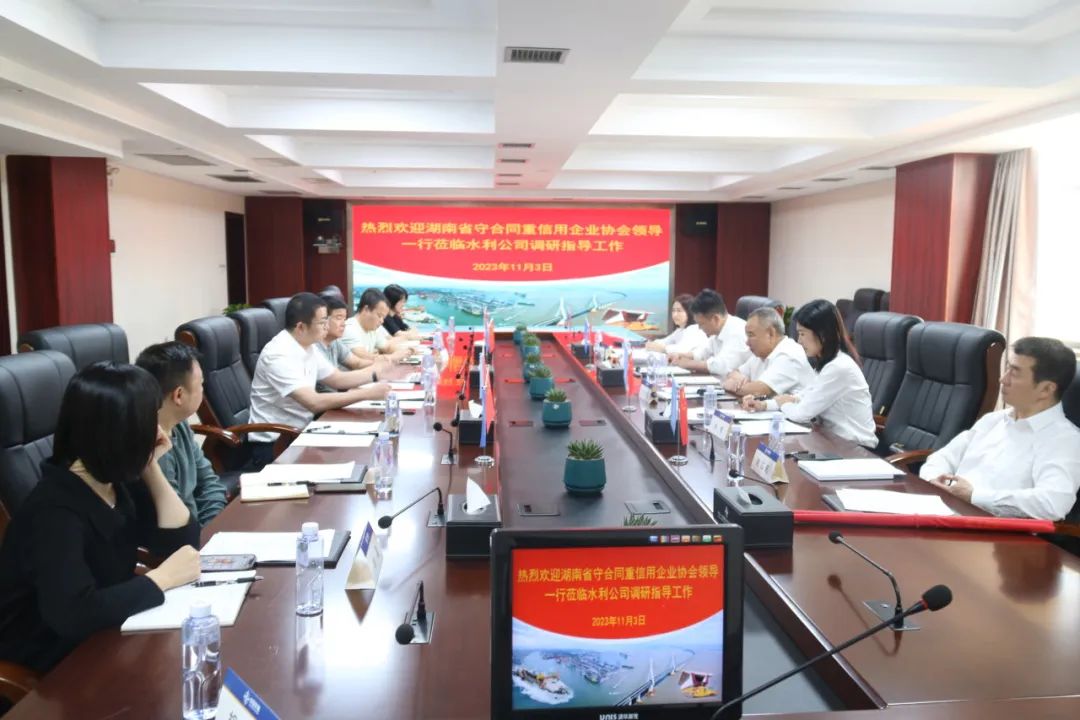 11月3日下午,湖南省守合同重信用企业协会副会长叶有泉、秘书长徐倩一行到公司调研指导工作,公司副总经理张开、孙西欢等领导及其他相关人员参与调研会议。