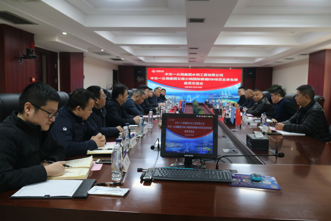 12月16日下午,一公局集团云南小哨国际新城EOD项目总承包部书记张剑兴、总经理杨金龙等一行人到公司开展合作交流,乐鱼在线(中国)书记、董事长张鑫,副总经理张开、李鹏、杨晓波,城投公司董事长赵汀等相关领导参与本次座谈交流。
