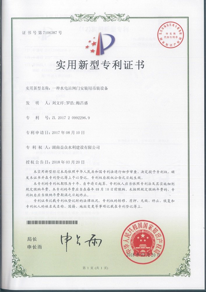 本实用新型公开了一种水电站闸门安装用吊装设备,包括太阳能电池板、闸墩、卷扬机、横梁和蓄电池,所述横梁顶端的中间位置处安装有蓄电池箱,且蓄电池箱内部的底端安装有蓄电池,所述蓄电池箱的顶端安装有支撑架,且支撑架的顶端安装有太阳能电池板,所述横梁顶端的两侧均安装有卷扬机,且卷扬机远离蓄电池箱一侧的顶端均安装有曝闪灯,所述横梁两侧的底端均安装有支撑柱,且支撑柱的底端均安装有滑轮。本实用新型通过安装有定滑轮、动滑轮和卷扬机,使用时,卷扬机拉动拉绳,拉绳在定滑轮和动滑轮上移动,吊起物体,这样物体自身的重力被分散,便于起吊。