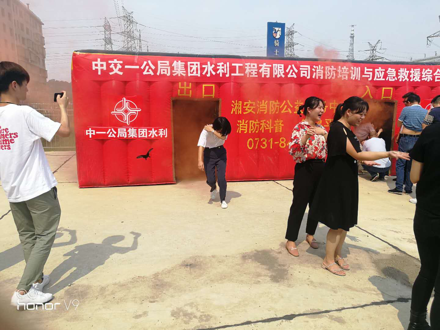 最后在体验式教学中,教会了公司员工疏散逃生的流程、线路、设施的使用、在黑暗、密闭、浓烟笼罩的环境低姿防烟的逃生要领等逃生基本常识,最后重点体验了使用高层应急逃生缓降器模拟高楼逃生。