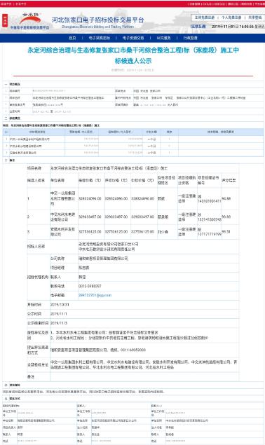 10月31日,乐鱼在线参加了永定河综合治理与生态修复张家口市桑干河综合整治工程I标(涿鹿段)施工项目投标,且顺利中标。