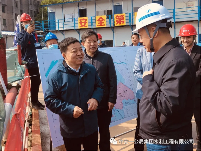 叶建春一行首先深入团洲泵站施工现场,听取了关于项目施工进程及防汛度汛工作开展情况的汇报,实地察看了防汛准备工作落实情况,对公司良好的发展势态和项目建设取得的进展给予充分肯定。叶建春强调,安全生产和防汛工作事关人民群众生命财产安全,事关经济发展、社会和谐稳定,做好这两项工作意义重大。他指出,项目部上下要强化政治意识、大局意识,清醒认识做好当前安全生产和防汛工作的极端重要性,牢牢绷紧安全生产和防汛工作这根弦,集中时间、集中力量、集中精力抓好各项工作;要认真分析今年的防汛形势,把各种隐患排查得更深一些,把各项工作做得更实一些,科学安排,周密部署,充分准备,全力以赴做好今年防汛工作。