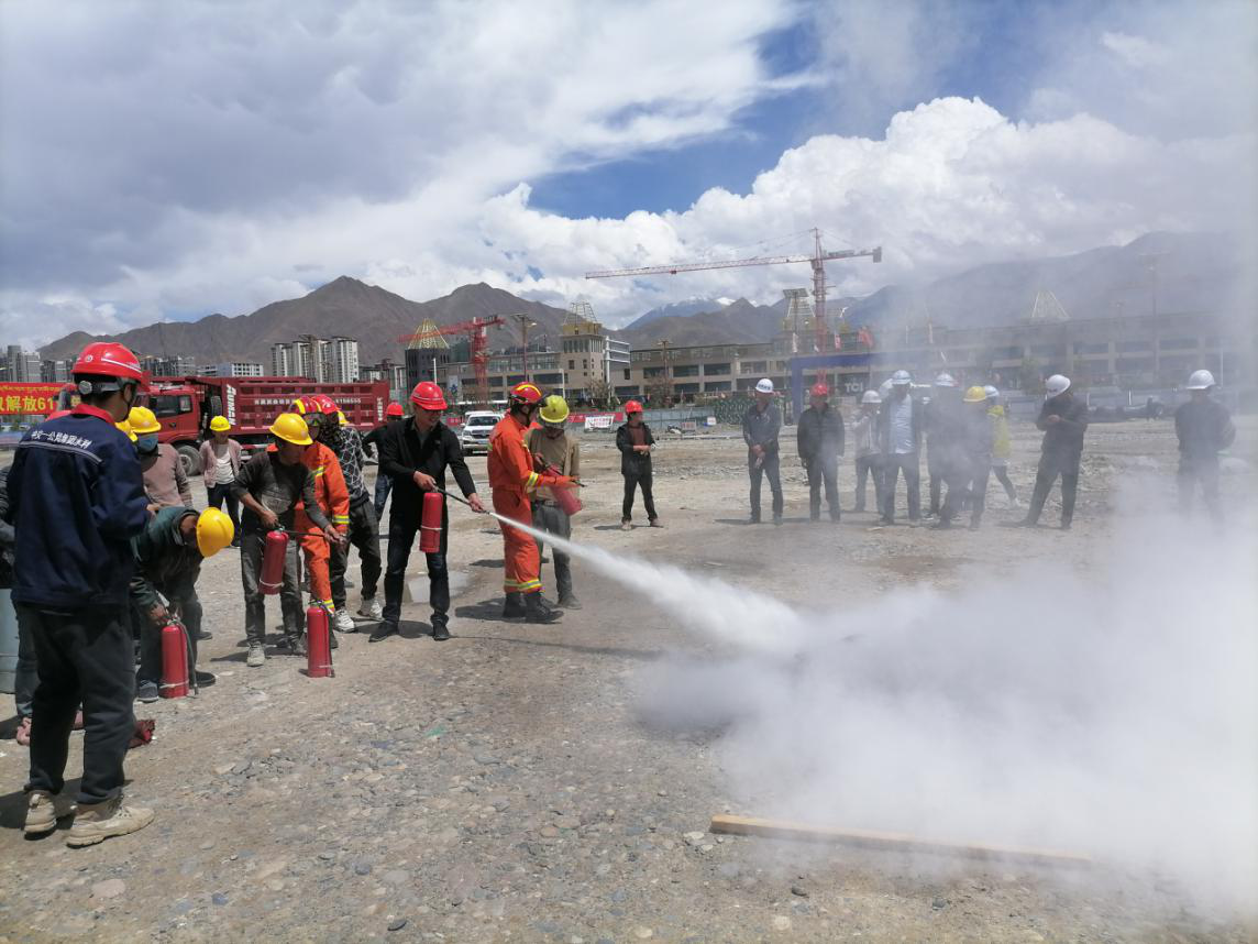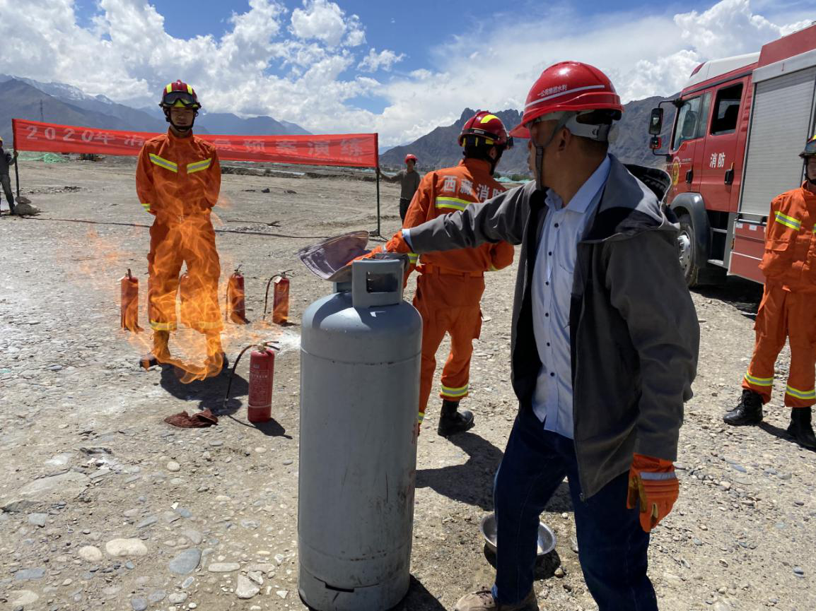此次演练活动特别邀请了拉萨市堆龙德庆区消防救援大队消防员亲临现场培训、指导。包括对灭火器的使用、火情报警、避让消防救援车辆、选择正确的灭火方式、避险等多方面的消防应急知识,并对火灾原因分析、抢救方法及最后统计人员伤亡、财产损失等方面做了讲解。通过理论与实践相结合,项目作业人员切身体验了正确的消防灭火技巧,有效提升了他们的安全防范意识与素质,同时在思想上也让他们得到了改变,把碍事占地的“红瓶子”认准成了保命的“护身符”。