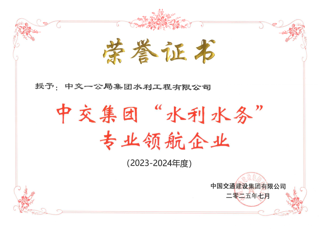 近日,中交集团正式公布2024年度三级公司评定结果,公司凭借在水利水务专业领域领先优势,同时获评中交集团“水利水务专业领航企业”及“重要三级公司”两项荣誉。