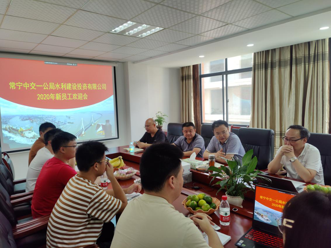 7月23日下午,常宁项目公司组织全体员工及新分配的5名新生在项目公司五楼会议室召开了2020届新员工入职欢迎会暨职工夜校启动仪式,水利公司副总经理兼常宁项目公司总经理李鹏及常宁项目公司其他领导班子成员出席并讲话。