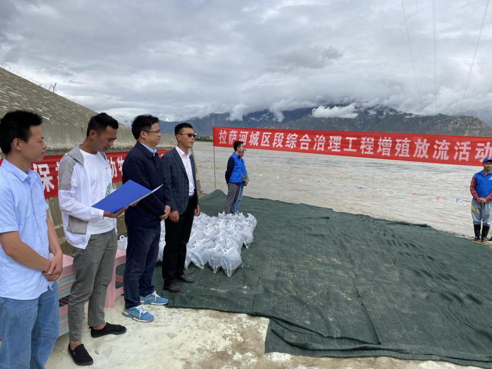 7月30日,由中交一公局集团、西藏自治区农科院水产所主办,拉萨河城区段综合治理及生态修复工程项目部承办的拉萨河城区段综合治理工程增殖放流活动在次角林段施工现场举行。拉萨市水利局副局长胡其勇、拉萨市水利工程建设管理中心、西藏自治区农科院水产所等单位领导及水利公司拉萨项目部相关人员参加了此次增殖放流活动。活动期间,30万尾西藏本土鱼苗被放流至拉萨河。