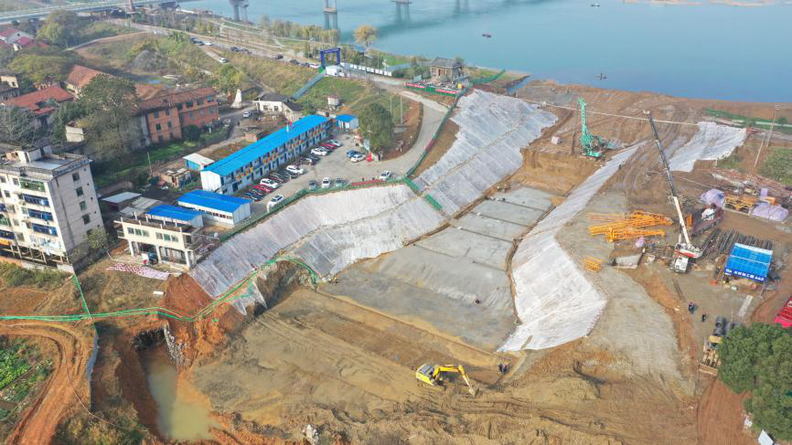 项目部在结合现场实际情况的基础上,合理安排组织项目部成员顺利地进行安全、有效、全面的项目管理,布置施工生产活动,控制施工进度,保证工程质量,推动项目进程。在管理方面,项目实行标准化管理,设置五部一室,区域实行“三区”标准化分离并封闭管理;在安全方面,施工现场执行安全标准化建设,统一有序设置安全防护措施和安全标示等;在进度管控方面,为保证防汛节点工程工期,项目制定周、月、季、年进度计划及相应进度保证措施;在施工工艺及质量控制方面,根据项目特点编制了相应施工方案及各类工程作业指导书,明确施工流程和施工过程中质量控制要点和标准,为现场施工人员进行技术质量管控提供依据。