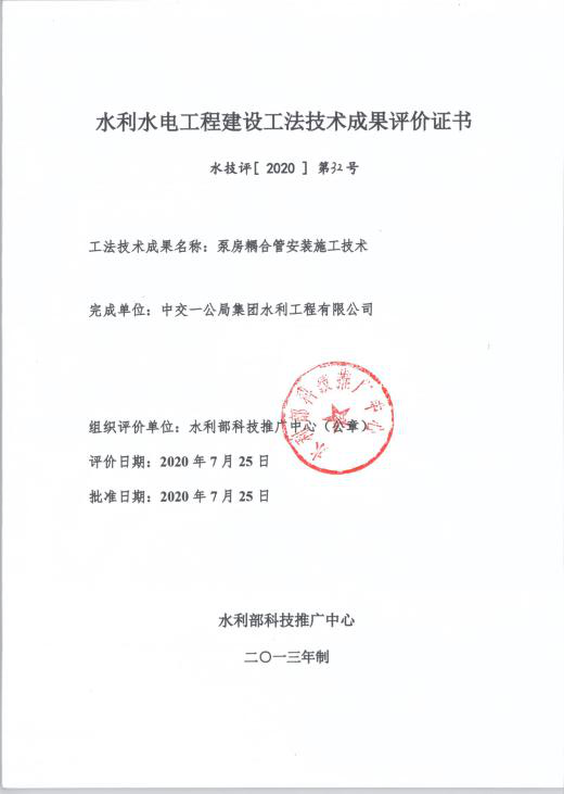 工法评价证书