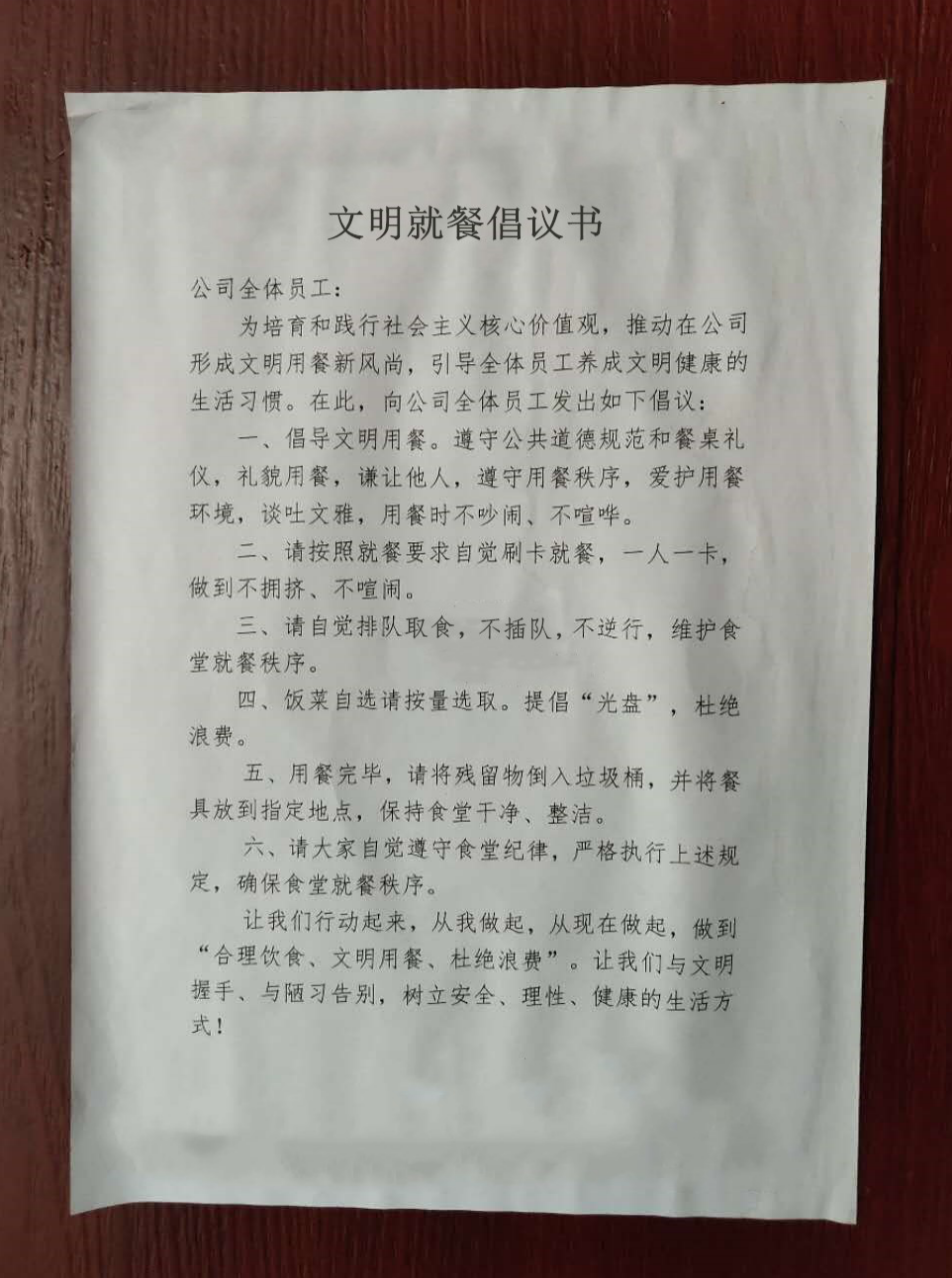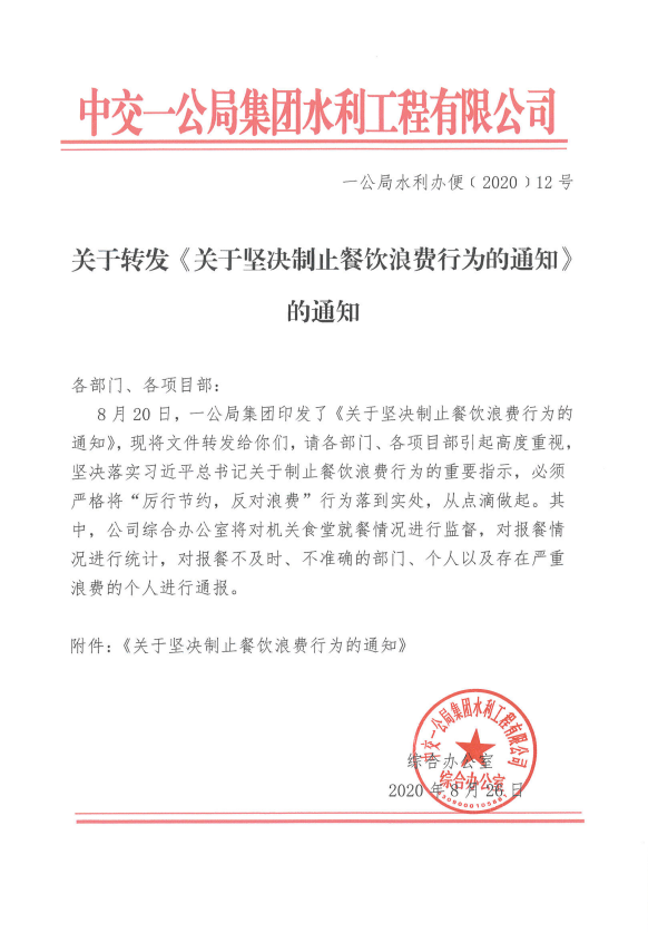 为积极落实和响应“光盘行动”,水利公司专门下发了通知。