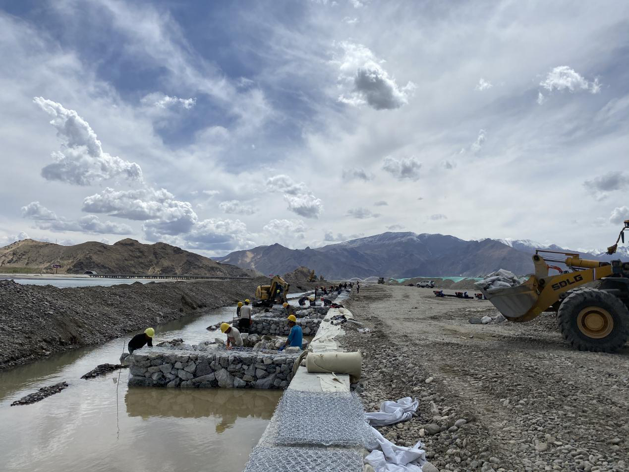 拉萨河城区段河畔在建工程多,交叉作业面广,项目部积极与相邻施工单位沟通协调,同时,项目部在确保安全和质量的前提下,合理布置施工计划,攻坚克难,紧锣密鼓争抢施工节点,尤其在施工作业面比枯水期的拉萨河水面低时,项目部加大降排水投资力度,有序组织施工班组抢抓工期,确保了施工生产的顺利进行。