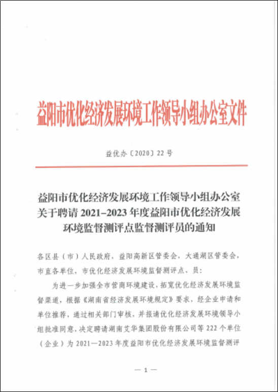 12月23日,益阳市优化经济发展环境工作小组召开了2020年经济发展环境满意度测评座谈会,并向媒体公示了2020-2023年益阳市优化经济发展环境监督测评点和评测员,中交一公局集团水利公司被评选为优化经济发展环境监督测评点,总经理蔡群文被评选为监督评测员。