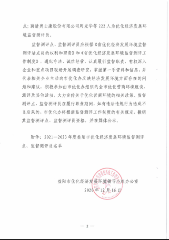 市优化经济发展环境监督测评点及评测员是由益阳市优化办严格按照社会推荐、相关部门把关、市优化办审定等多个程序确定的。此次水利公司被评为优化经济发展环境监督测评点,是市优化办对公司积极履约的高度肯定,对公司进一步融入益阳经济、营造更优发展环境、提高社会影响力和知名度等方面具有积极作用。