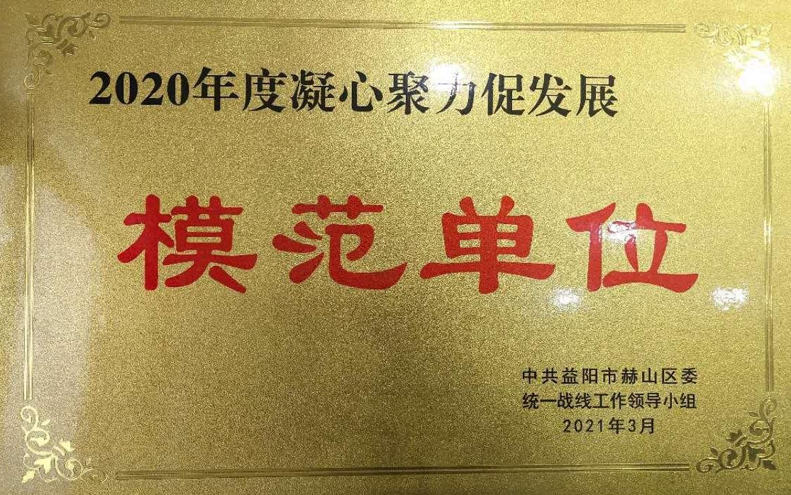 3月18日,公司被中共益阳市赫山区委统一战线领导工作小组授予2020年度凝心聚力促发展模范单位荣誉称号。
