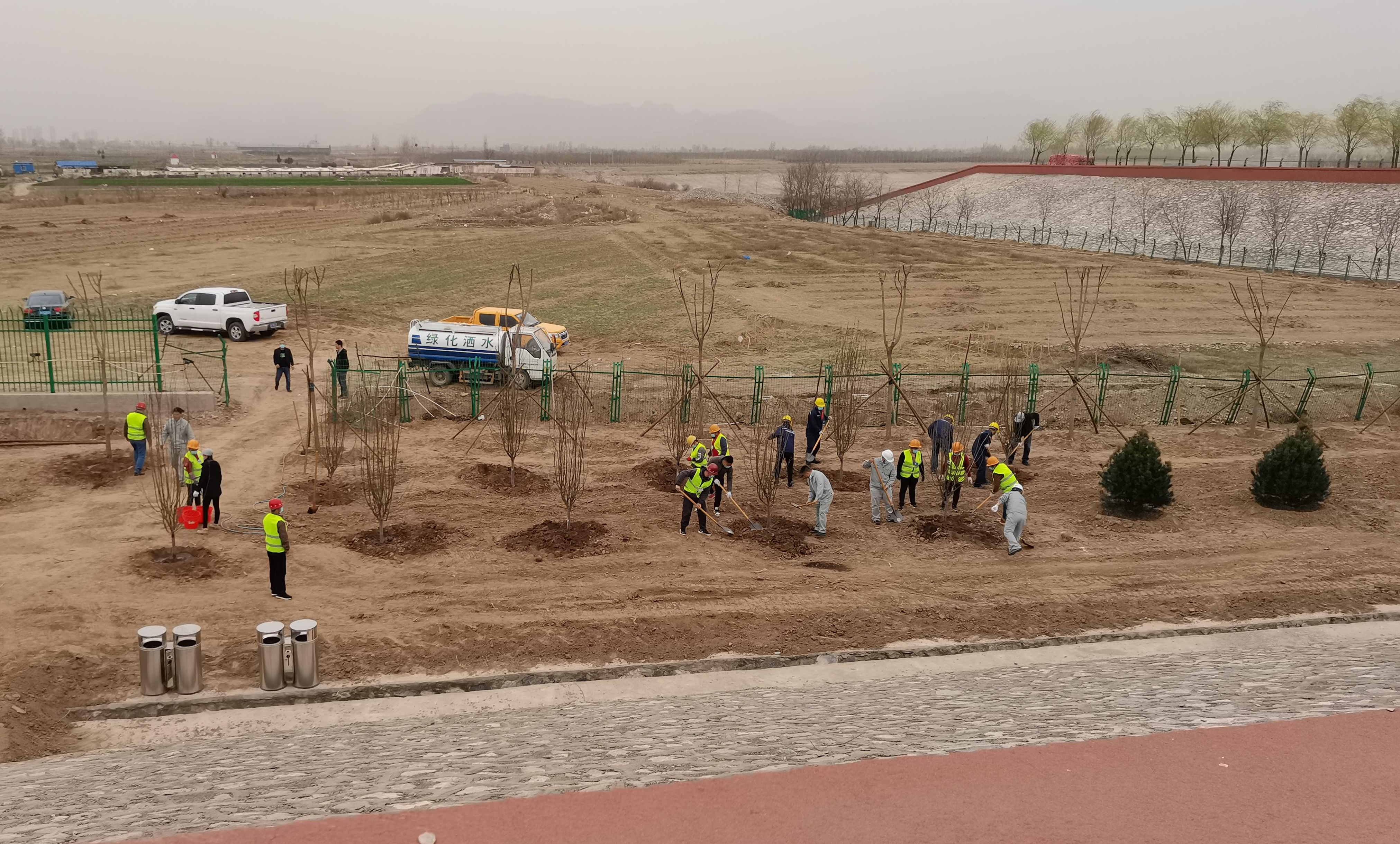 在植树过程中,各位领导和参建单位各项目部人员团结协作、配合默契,挥锹挖坑、填土栽种,用实际行动践行了“绿水青山就是金山银山”的绿色发展理念。在大家的共同努力下,国槐、白皮松、西府海棠等5个品种的树苗陆续挺立在施工现场,相信在不久的将来它们会成为项目上一道绿色的风景线。