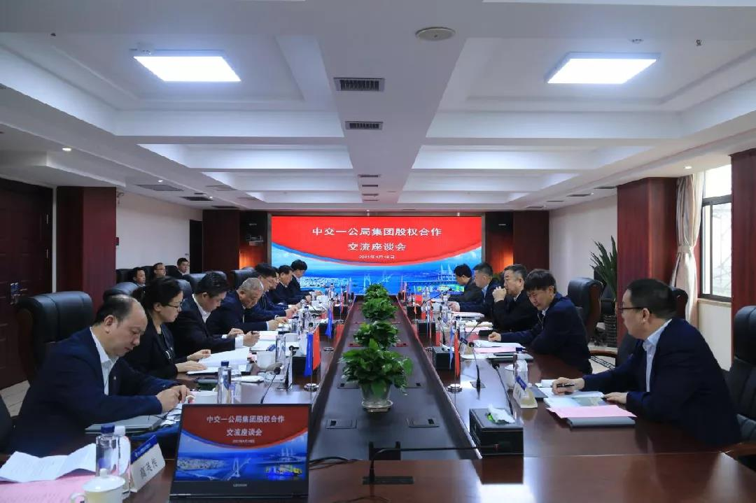 4月18日上午,中交一公局集团股权合作交流座谈会在公司总部九楼会议室召开,一公局集团党委书记、董事长都业洲,副总经理庞维新,集团公司董事会秘书、战略发展部总经理兼公司董事吴传贤等领导,公司董事长张鑫、总经理蔡群文以及其他股权合作公司董事长、总经理等相关领导参与了本次会议。会议由庞维新主持。