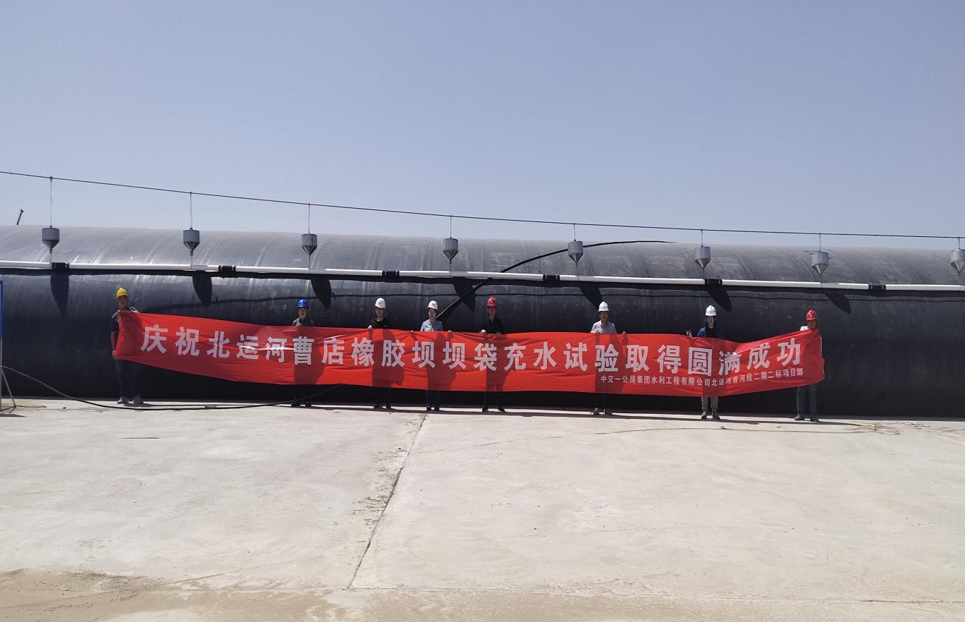 5月26日,由公司承建的北运河香河段生态整治PPP项目曹店橡胶坝坝袋充水试验取得圆满成功。