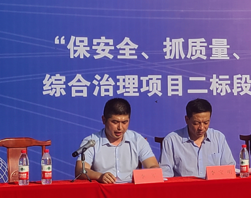 9月29日,公司大汶河水环境综合治理项目二标段举行2021年第四季度“保安全,抓质量,促进度,大干一百天”劳动竞赛动员大会。钢城区水务局副局长孙波、大汶河项目负责人曾兴雄、项目经理李军及业主方、监理方、施工班组等相关人员参与了本次活动。