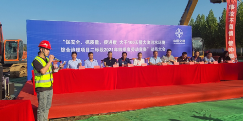 仪式开始,曾兴雄对本次竞赛作动员讲话,李军宣读了《大汶河水环境综合治理项目二标段2021年四季度劳动竞赛实施方案》,随后,孙波代表建设处、项目管理、监理、审计等相关单位发言,各参赛施工队伍代表也发表了竞赛宣言。