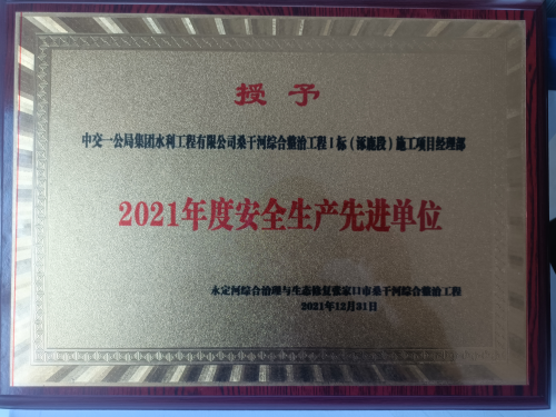 近日,公司桑干河整治一标项目在业主与各施工方年度总结会议中获评“2021年度安全生产先进单位”,这是继2020年后,项目部第二次获此殊荣。