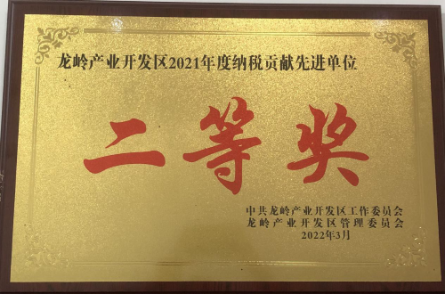3月8日,公司荣获龙岭产业开发区2021年度纳税贡献先进单位二等奖。此前,公司曾连续四年获得赫山区财税收入贡献一等奖。