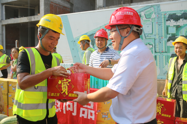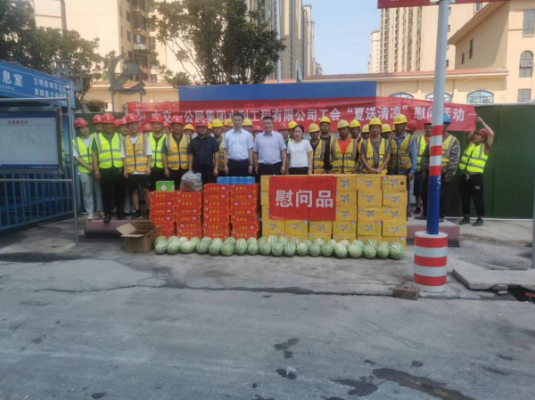 张鑫先后来到南县棚户区改造PPP项目、益阳中交世通中心项目及益阳市第三人民医院项目慰问一线职工,为他们送上凉茶、藿香正气水、西瓜等慰问品,并合影留念。