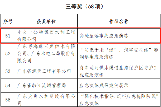 近日,在水利部组织开展的“全国水利安全生产标准化应急演练成果评选展示活动”中,公司作品“高处坠落事故应急演练”,荣获三等奖,是湖南省唯一获此奖项的施工单位。