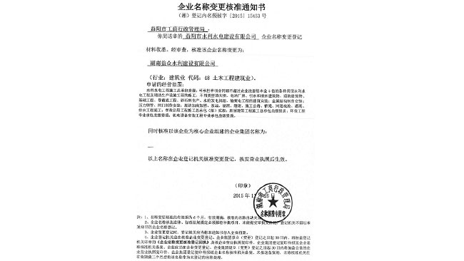 热烈庆祝原益阳市水利水电建设有限公司正式更名为湖南益众水利建设有限公司。